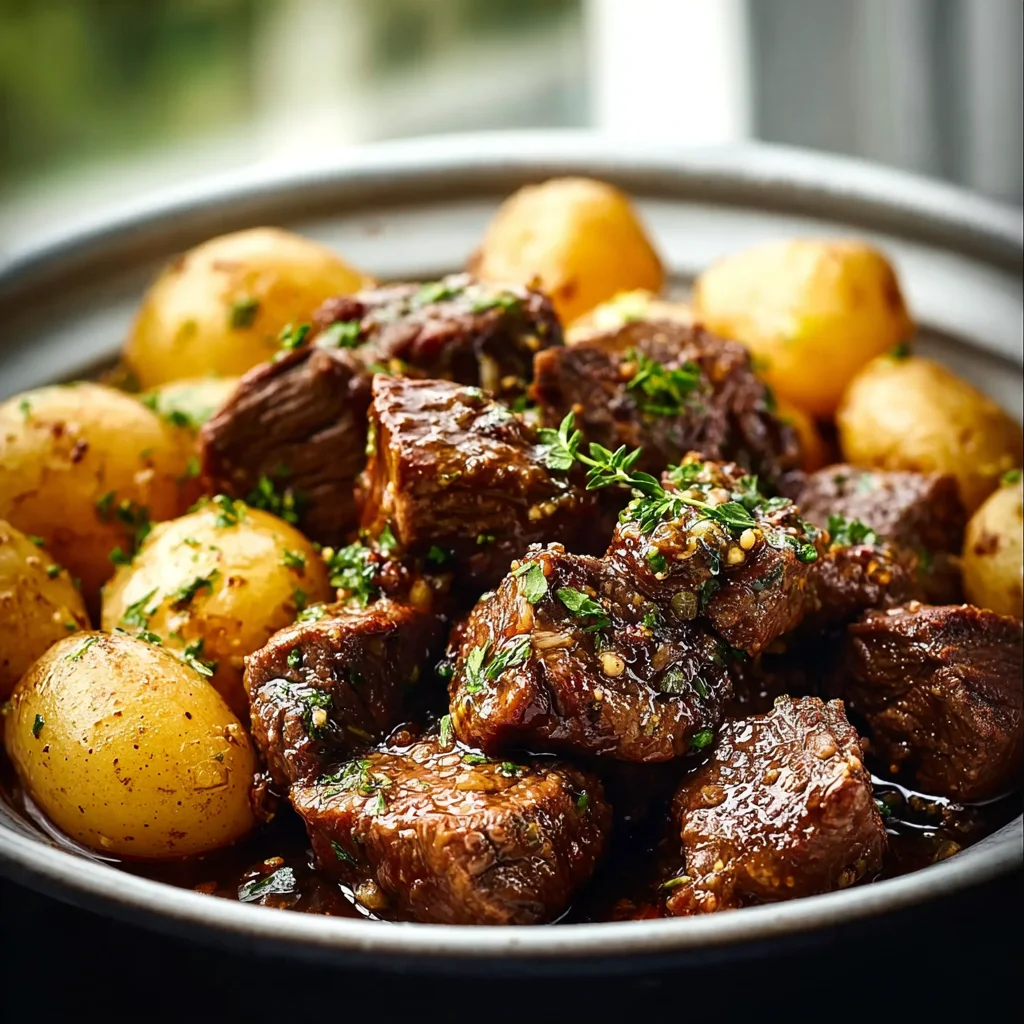 Easy Slow Cooker Garlic Butter Beef Bites with Potatoes Recipe